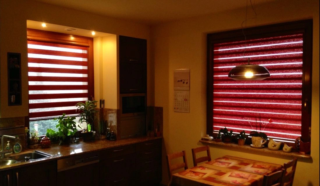 Popularny system montażu bezpośrednio na skrzydle okiennym, w którym tkanina porusza się między listwami przyszybowymi.