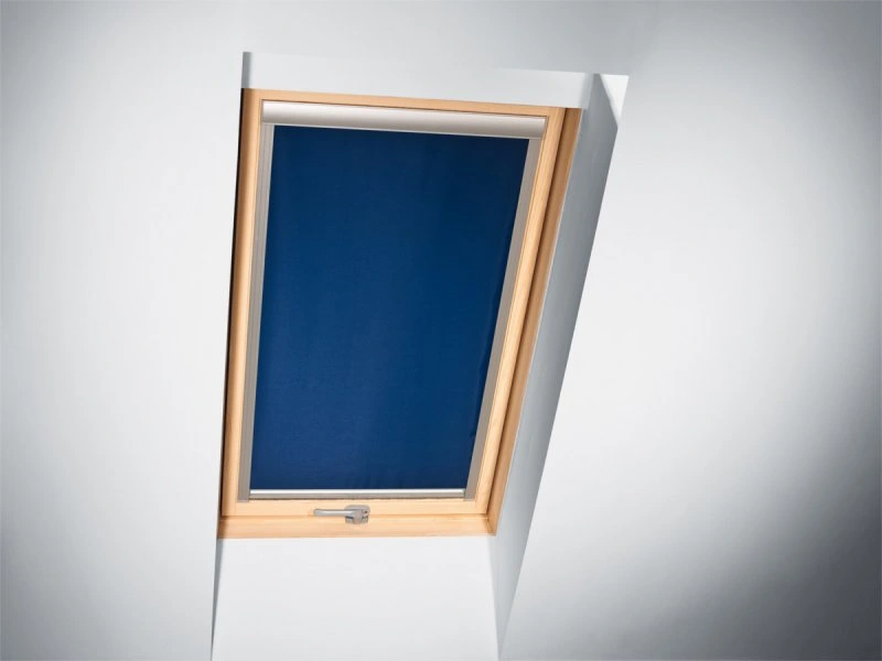 Do rolet dachowych polecamy tkaninę z powłoką termiczna odbijającą promienie słoneczne i mocno zaciemniającą pomieszczenie.
